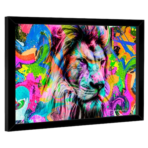 Quadro Decorativo Leão Pop Art Moldura Preta - 84x54cm -
