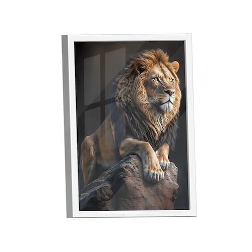 Quadro Leão Protetor -- BR ARTES Moldura Branca e Vidro - Grande 118x78 -