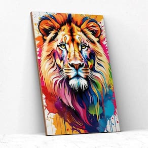 Quadro Decorativo Leão Rei Cores Arco-Íris Colororido Animal