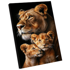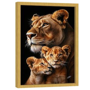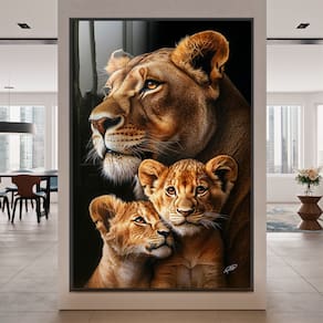 Quadro Decorativo Leoa e Dois Filhotes Moldura Preta - 118x78cm -