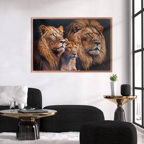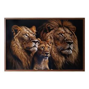 Quadro Decorativo Leões Moldura Cx Alta 100x66 Titulo Moldura Madeira