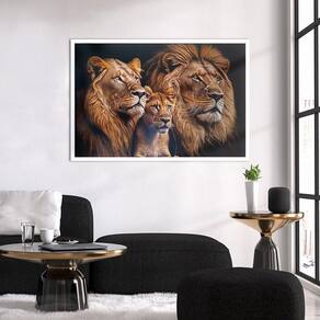 Quadro Decorativo Leões Moldura Cx Alta 100x66