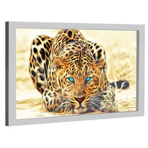 Quadro Decorativo Leopardo Olhos Azuis Moldura Preta - 84x54cm -