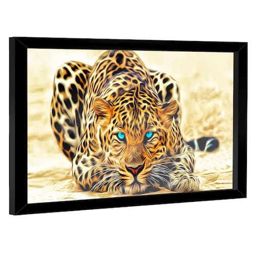 Quadro Decorativo Leopardo Olhos Azuis Moldura Preta e Vidro - 180x105cm -