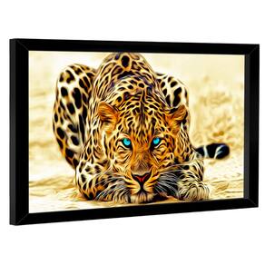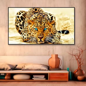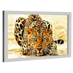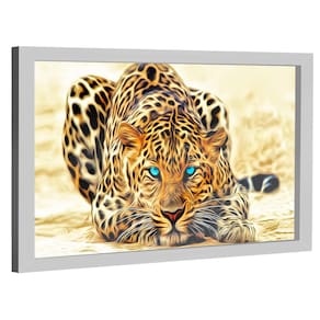Quadro Decorativo Leopardo Olhos Azuis Moldura Branca e Vidro - 84x54cm -