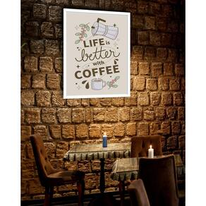 Quadro decorativo life is better with coffee - 70x50cm Cor: moldura branca Informações do produto tire todas as suas dúvidas no descritivo abaixo: decoração para quarto, sala, cozinha, escritório, área gourmet e muito mais. Chega de paredes vazias medidas - cada peça tem 70x50cm . Material do papel - papel fotográfico brilhante de altíssima resolução acabamento - todos os quadros são acompanhados de vidro para proteção da imagem. - moldura em madeira maciça na cor preta ou branca conforme produto escolhido e pendurador. - os quadros são embalados de forma segura com plástico bolha com camada dupla de acordo com o tamanho dos quadros. - de 3 meses. Meu quadro chegou. Como posso fixá-lo Você precisa apenas de um martelo e um prego, pois os quadros já vão acompanhados de penduradores. Esta é a forma mais indicada. Como posso limpar meu quadro A limpeza é feita como um móvel comum da sua casa. Apenas um pano seco ou espanador são suficientes para tal Marca: Não Informado