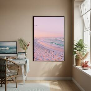 Quadro Decorativo Litoral Rosa-70x50cm - Cor: Moldura Preta