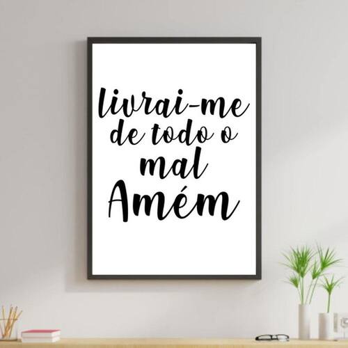 Quadro Decorativo Livrai-me de Todo Mal. Amém! - Tamanho: A4 (20 x 30) / Acabamento: Película de acetato / Moldura: Madeira preta