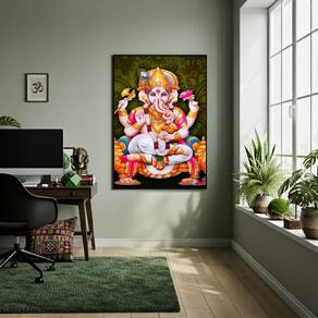 Quadro Decorativo Lord Ganesha - 70x50cm - Cor: Moldura Branca