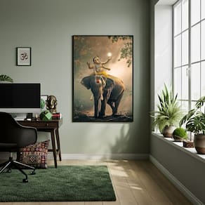 Quadro Decorativo Lord Ganesha Elefante - 70x50cm - Cor: Moldura Branca