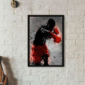 Quadro decorativo lutador de boxe 33x24cm - com vidro Moldura: madeira preta Informações do produto tire todas as suas dúvidas no descritivo abaixo: decoração para quarto, sala, cozinha, escritório, área gourmet e muito mais. Chega de paredes vazias medidas - cada peça tem 33x24cm a4 . Material do papel - papel fotográfico brilhante de altíssima resolução acabamento - todos os quadros são acompanhados de vidro para proteção da imagem. - moldura em madeira maciça na cor preta e pendurador . - os quadros são embalados de forma segura com plástico bolha com camada dupla de acordo com o tamanho dos quadros. - de 3 meses. Meu quadro chegou. Como posso fixá-lo Você precisa apenas de um martelo e um prego, pois os quadros já vão acompanhados de penduradores. Esta é a forma mais indicada. Como posso limpar meu quadro A limpeza é feita como um móvel comum da sua casa. Apenas um pano seco ou espanador são suficientes para tal Marca: Não Informado