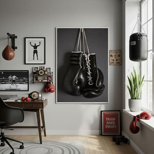 Quadro decorativo luvas pretas de boxe-70x50cm mold preta Informações do produto tire todas as suas dúvidas no descritivo abaixo: decoração para quarto, sala, cozinha, escritório, área gourmet e muito mais. Chega de paredes vazias medidas - cada peça tem 70x50cm . Material do papel - papel fotográfico brilhante de altíssima resolução acabamento - todos os quadros são acompanhados de vidro para proteção da imagem. - moldura em madeira maciça na cor preta e pendurador. - os quadros são embalados de forma segura com plástico bolha com camada dupla de acordo com o tamanho dos quadros. - de 3 meses. Meu quadro chegou. Como posso fixá-lo Você precisa apenas de um martelo e um prego, pois os quadros já vão acompanhados de penduradores. Esta é a forma mais indicada. Como posso limpar meu quadro A limpeza é feita como um móvel comum da sua casa. Apenas um pano seco ou espanador são suficientes para tal Marca: Não Informado