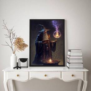 Quadro decorativo mago bruxo 45x34cm Moldura: madeira branca Informações do produto tire todas as suas dúvidas no descritivo abaixo: decoração para quarto, sala, cozinha, escritório, área gourmet e muito mais. Chega de paredes vazias. Medidas - cada peça tem 45x34cm a3 . Material do papel - papel fotográfico brilhante de altíssima resolução acabamento - todos os quadros são acompanhados de uma película de acetato para proteção da imagem. - os quadros são embalados de forma segura com plástico bolha com camada dupla de acordo com o tamanho dos quadros. Garantia - garantia de 3 meses. Meu quadro chegou. Como posso fixá-lo Você precisa apenas de um martelo e um prego, pois os quadros já vão acompanhados de penduradores. Esta é a forma mais indicada. Caso prefira, você pode utilizar uma fita dupla face neste caso, sugerimos de alta qualidade para evitar que descole e seu quadro caia . Como posso limpar meu quadro A limpeza é feita como um móvel comum da sua casa. Apenas um pano seco ou espanador são suficientes para tal Ean: 7898017356417