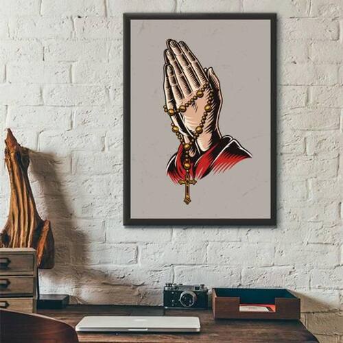 Quadro Decorativo Mãos Com Terço 45X34Cm Moldura: madeira preta Informações do produto: decoração para quarto, sala, cozinha, escritório, área gourmet e muito mais. Chega de paredes vazias Medidas - cada peça tem 45x34cm a3 . Material do papel - papel fotográfico brilhante de altíssima resolução acabamento - todos os quadros são acompanhados de uma película de acetato para proteção da imagem. - moldura em madeira maciça na cor preta e pendurador móvel que pode ser retirado facilmente caso deseje fixar com fita dupla face. - os quadros são embalados de forma segura com plástico bolha com camada dupla de acordo com o tamanho dos quadros. - de 3 meses Meu quadro chegou. Como posso fixá-lo Você precisa apenas de um martelo e um prego, pois os quadros já vão acompanhados de penduradores. Esta é a forma mais indicada. Caso prefira, você pode utilizar uma fita dupla face neste caso, sugerimos de alta qualidade para evitar que descole e seu quadro caia . Como posso limpar meu quadro A limpeza é feita como um móvel comum da sua casa. Apenas um pano seco ou espanador são suficientes para tal