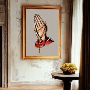 Quadro Decorativo Mãos de Oração Moldura Dourada - 60x40cm -