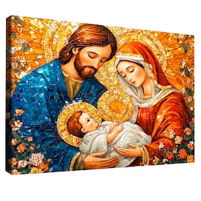Quadro Decorativo Maria, José e Jesus em Mosaico Moldura Dourada - 84x54cm -