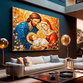 Quadro Decorativo Maria, José e Jesus em Mosaico Moldura Preta - 84x54cm -