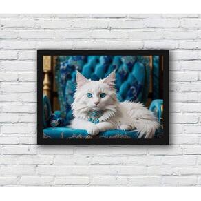 Quadro Decorativo MDF 20x28 c/ Moldura Gato Luxuoso - Moldura: Preta