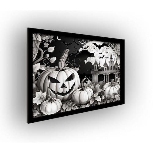 Quadro Decorativo MDF 20x28 c/ Moldura Halloween Pumpkins Gray - Moldura: Preta