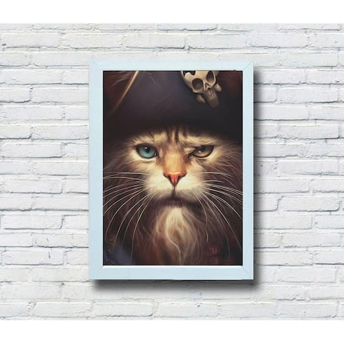 Seu espaço merece a qualidade premium do nosso quadro decorativo feito em MDF. Com opções de moldura ou sem moldura, e com impressão de alta qualidade, você desfrutará de cores vibrantes e arte exclusiva no "Gato Pirata".