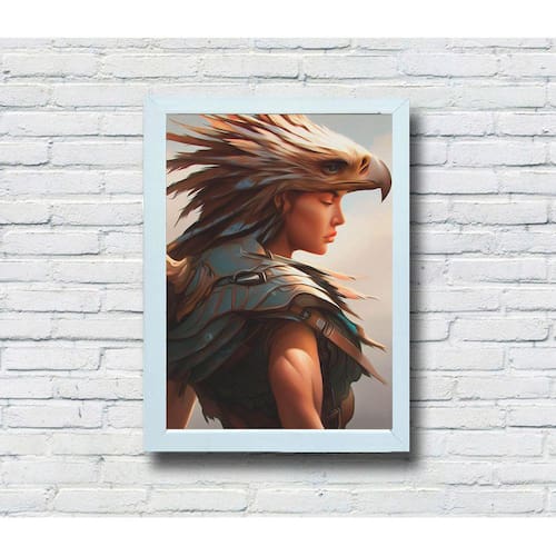 Inspire-se diariamente com nosso quadro decorativo de alta qualidade feito em MDF. As cores vibrantes e a arte exclusiva da "Guerreira Falcão" se combinam para criar uma peça cativante.