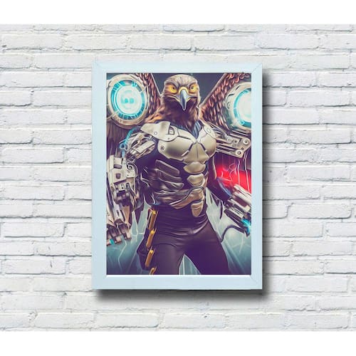Quadro Decorativo MDF 20x28 Moldura Branca Guerreiro águia - Arte: 02
