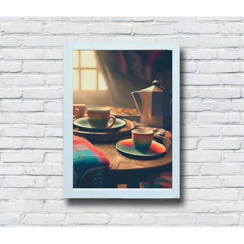 Seu espaço merece a qualidade premium do nosso quadro decorativo feito em MDF. Com opções de moldura ou sem moldura, e com impressão de alta qualidade, você desfrutará de cores vibrantes e arte exclusiva na "Hora do Café".