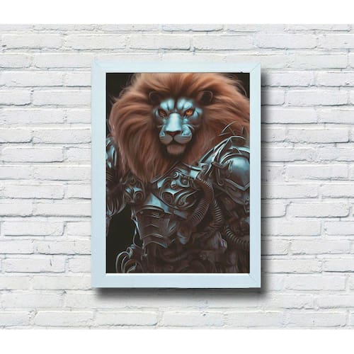 Crie um ambiente único com nossos quadros decorativos feitos em MDF de alta qualidade. Escolha entre a opção com moldura ou sem moldura e deixe a impressão impecável destacar cores vibrantes e arte exclusiva em cada peça do "Leão Guerreiro".