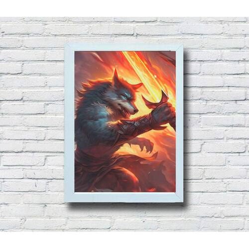 Celebre a arte em sua forma mais vibrante com nosso quadro decorativo de alta qualidade feito em MDF. Escolha entre moldura ou sem moldura, e permita que a impressão excepcional e a arte exclusiva do "Lobo com Espada Flamejante" se combinem para um impacto impressionante.