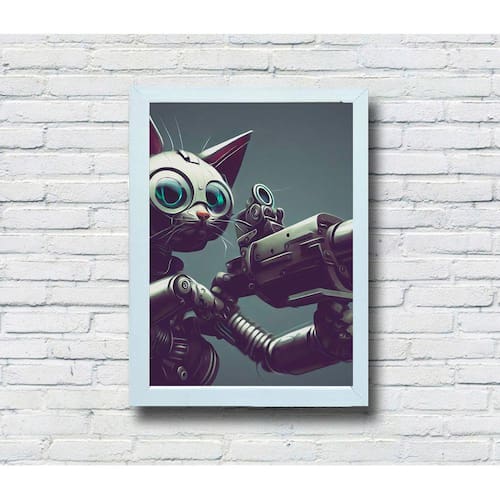 Nosso quadro decorativo de alta qualidade feito em MDF é uma afirmação de bom gosto. Com opções de moldura ou sem moldura, veja como a impressão excepcional realça cores vibrantes e arte exclusiva do "Robot Cat".