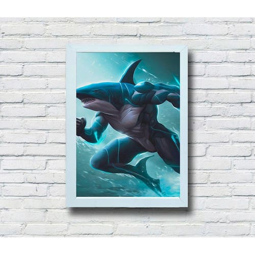 Nossos quadros decorativos de alta qualidade feitos em MDF são projetados para impressionar. Com opções de moldura ou sem moldura, veja como as cores vibrantes e a arte exclusiva do "Shark Hero" ganham vida graças à nossa impressão excepcional.