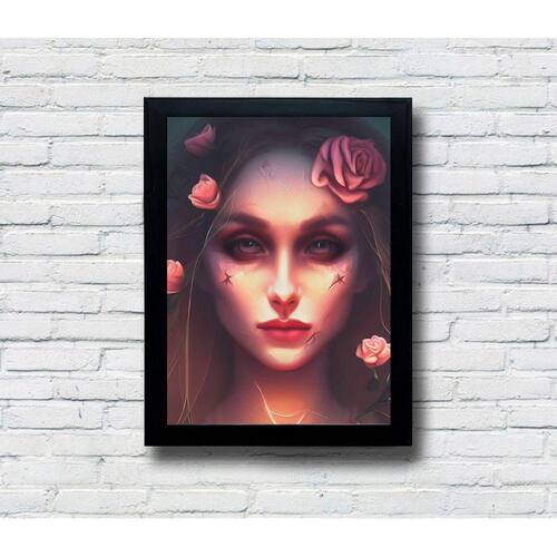 Quadro Decorativo MDF Girl Face - Modelo: 05 / Moldura: Preta / Tamanho: 20x28