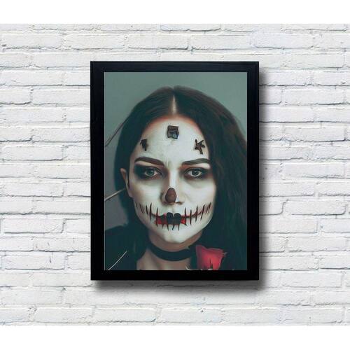 Quadro Decorativo MDF Girl Face - Modelo: 04 / Moldura: Preta / Tamanho: 20x28