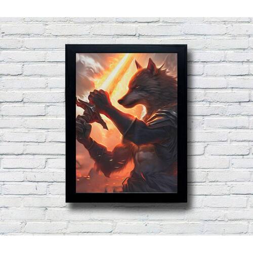 Celebre a arte em sua forma mais vibrante com nosso quadro decorativo de alta qualidade feito em MDF. Escolha entre moldura ou sem moldura, e permita que a impressão excepcional e a arte exclusiva do "Lobo com Espada Flamejante" se combinem para um impacto impressionante. Marca: I Love Be Nerd
