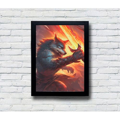 Celebre a arte em sua forma mais vibrante com nosso quadro decorativo de alta qualidade feito em MDF. Escolha entre moldura ou sem moldura, e permita que a impressão excepcional e a arte exclusiva do "Lobo com Espada Flamejante" se combinem para um impacto impressionante. Marca: I Love Be Nerd
