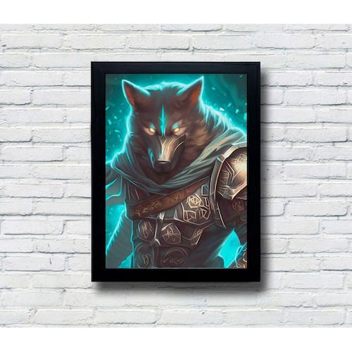 Personalize suas paredes com nossos quadros decorativos feitos em MDF de alta qualidade. Com opções de moldura ou sem moldura, permita que as cores vibrantes saltam da arte exclusiva do "Lobo Guerreiro", graças à nossa impressão premium. Marca: I Love Be Nerd