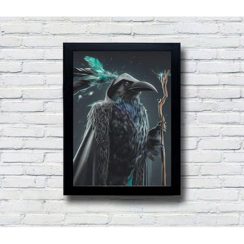 Faça uma declaração de estilo com nosso quadro decorativo de alta qualidade feito em MDF. Escolha entre a opção com moldura ou sem moldura, e veja como a impressão excepcional torna as cores vibrantes e a arte exclusiva do "Mago Corvo" ainda mais cativantes.