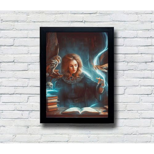 Deixe sua decoração falar volumes com nossos quadros decorativos feitos em MDF de alta qualidade. A impressão impecável intensifica as cores vibrantes e a arte exclusiva da "Mulher Feiticeira", com opções de moldura ou sem moldura.