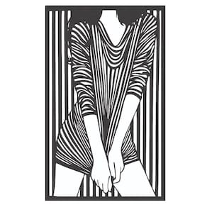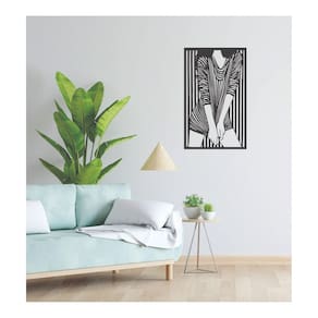 Quadro Decorativo Mdf Preto Mulher Com Vestido 40X20Cm