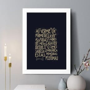 Quadro decorativo memorias postumas 45x34cm Cor: moldura branca Informações do produto tire todas as suas dúvidas no descritivo abaixo: decoração para quarto, sala, cozinha, escritório, área gourmet e muito mais. Chega de paredes vazias. Medidas - cada peça tem 45x34cm a3 . Material do papel - papel fotográfico brilhante de altíssima resolução acabamento - todos os quadros são acompanhados de uma película de acetato para proteção da imagem. - os quadros são embalados de forma segura com plástico bolha com camada dupla de acordo com o tamanho dos quadros. Garantia - garantia de 3 meses. Meu quadro chegou. Como posso fixá-lo Você precisa apenas de um martelo e um prego, pois os quadros já vão acompanhados de penduradores. Esta é a forma mais indicada. Caso prefira, você pode utilizar uma fita dupla face neste caso, sugerimos de alta qualidade para evitar que descole e seu quadro caia . Como posso limpar meu quadro A limpeza é feita como um móvel comum da sua casa. Apenas um pano seco ou espanador são suficientes para tal