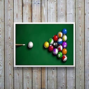 Quadro decorativo mesa de bilhar- sinuca 33x24cm Moldura: madeira preta Informações do produto tire todas as suas dúvidas no descritivo abaixo: decoração para quarto, sala, cozinha, escritório, área gourmet e muito mais. Chega de paredes vazias medidas - cada peça tem 33x24cm a4 . Material do papel - papel fotográfico brilhante de altíssima resolução acabamento - todos os quadros são acompanhados de uma película de acetato para proteção da imagem. - os quadros são embalados de forma segura com plástico bolha com camada dupla de acordo com o tamanho dos quadros. Garantia - garantia de 3 meses. Meu quadro chegou. Como posso fixá-lo Você precisa apenas de um martelo e um prego, pois os quadros já vão acompanhados de penduradores. Esta é a forma mais indicada. Caso prefira, você pode utilizar uma fita dupla face neste caso, sugerimos de alta qualidade para evitar que descole e seu quadro caia . Como posso limpar meu quadro A limpeza é feita como um móvel comum da sua casa. Apenas um pano seco ou espanador são suficientes para tal Ean: 7891610555782