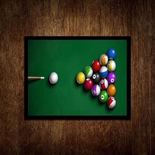 Quadro decorativo mesa de bilhar- sinuca 45x34cm Moldura: madeira preta Informações do produto tire todas as suas dúvidas no descritivo abaixo: decoração para quarto, sala, cozinha, escritório, área gourmet e muito mais. Chega de paredes vazias. Medidas - cada peça tem 45x34cm a3 . Material do papel - papel fotográfico brilhante de altíssima resolução acabamento - todos os quadros são acompanhados de uma película de acetato para proteção da imagem. - os quadros são embalados de forma segura com plástico bolha com camada dupla de acordo com o tamanho dos quadros. - de 3 meses. Meu quadro chegou. Como posso fixá-lo Você precisa apenas de um martelo e um prego, pois os quadros já vão acompanhados de penduradores. Esta é a forma mais indicada. Caso prefira, você pode utilizar uma fita dupla face neste caso, sugerimos de alta qualidade para evitar que descole e seu quadro caia . Como posso limpar meu quadro A limpeza é feita como um móvel comum da sua casa. Apenas um pano seco ou espanador são suficientes para tal Marca: Não Informado Ean: 7894121878999