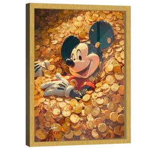 Quadro Decorativo Mickey Mouse Ouro Moldura Dourada - 84x54cm -