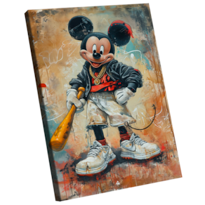 Quadro Decorativo Mickey Mouse Rebelde Moldura Preta - 84x54cm -