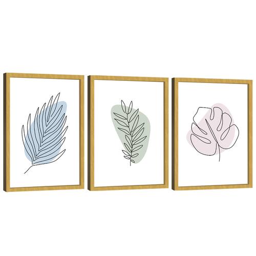 Quadro Decorativo Minimalista Abstrato Floral Moldura Dourada - 84x54cm -