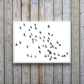 Quadro decorativo minimalista pássaros voando 45x34cm Moldura: madeira preta Informações do produto tire todas as suas dúvidas no descritivo abaixo: decoração para quarto, sala, cozinha, escritório, área gourmet e muito mais. Chega de paredes vazias. Medidas - cada peça tem 45x34cm a3 . Material do papel - papel fotográfico brilhante de altíssima resolução acabamento - todos os quadros são acompanhados de uma película de acetato para proteção da imagem. - os quadros são embalados de forma segura com plástico bolha com camada dupla de acordo com o tamanho dos quadros. Garantia - garantia de 3 meses. Meu quadro chegou. Como posso fixá-lo Você precisa apenas de um martelo e um prego, pois os quadros já vão acompanhados de penduradores. Esta é a forma mais indicada. Caso prefira, você pode utilizar uma fita dupla face neste caso, sugerimos de alta qualidade para evitar que descole e seu quadro caia . Como posso limpar meu quadro A limpeza é feita como um móvel comum da sua casa. Apenas um pano seco ou espanador são suficientes para tal Ean: 7895670556055