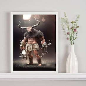 Quadro decorativo minotauro 33x24cm Moldura: madeira branca Informações do produto tire todas as suas dúvidas no descritivo abaixo: decoração para quarto, sala, cozinha, escritório, área gourmet e muito mais. Chega de paredes vazias medidas - cada peça tem 33x24cm a4 . Material do papel - papel fotográfico brilhante de altíssima resolução acabamento - todos os quadros são acompanhados de uma película de acetato para proteção da imagem. - os quadros são embalados de forma segura com plástico bolha com camada dupla de acordo com o tamanho dos quadros. Garantia - garantia de 3 meses. Meu quadro chegou. Como posso fixá-lo Você precisa apenas de um martelo e um prego, pois os quadros já vão acompanhados de penduradores. Esta é a forma mais indicada. Caso prefira, você pode utilizar uma fita dupla face neste caso, sugerimos de alta qualidade para evitar que descole e seu quadro caia . Como posso limpar meu quadro A limpeza é feita como um móvel comum da sua casa. Apenas um pano seco ou espanador são suficientes para tal Ean: 7893518532230