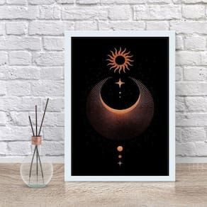 Quadro decorativo místico eclipse 24x18cm - com vidro Moldura: madeira branca Informações do produto tire todas as suas dúvidas no descritivo abaixo: decoração para quarto, sala, cozinha, escritório, área gourmet e muito mais. Chega de paredes vazias medidas - cada peça tem 24x18cm a5 . Material do papel - papel fotográfico brilhante de altíssima resolução acabamento - todos os quadros são acompanhados de vidro para proteção da imagem. - moldura em madeira maciça na cor preta ou branca conforme produto escolhido e pendurador . - os quadros são embalados de forma segura com plástico bolha com camada dupla de acordo com o tamanho dos quadros. Garantia - garantia de 3 meses. Meu quadro chegou. Como posso fixá-lo Você precisa apenas de um martelo e um prego, pois os quadros já vão acompanhados de penduradores. Esta é a forma mais indicada. Como posso limpar meu quadro A limpeza é feita como um móvel comum da sua casa. Apenas um pano seco ou espanador são suficientes para tal Ean: 7897798176740