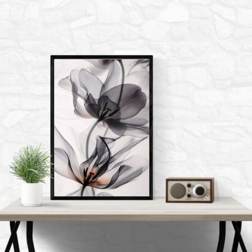 Quadro decorativo moderno flor cinza 24x18cm Cor: moldura preta Informações do produto tire todas as suas dúvidas no descritivo abaixo: decoração para quarto, sala, cozinha, escritório, área gourmet e muito mais. Chega de paredes vazias medidas - cada peça tem 24x18cm a5 . Material do papel - papel fotográfico brilhante de altíssima resolução acabamento - todos os quadros são acompanhados de uma película de acetato para proteção da imagem. - os quadros são embalados de forma segura com plástico bolha com camada dupla de acordo com o tamanho dos quadros. Garantia - garantia de 3 meses. Meu quadro chegou. Como posso fixá-lo Você precisa apenas de um martelo e um prego, pois os quadros já vão acompanhados de penduradores. Esta é a forma mais indicada. Caso prefira, você pode utilizar uma fita dupla face neste caso, sugerimos de alta qualidade para evitar que descole e seu quadro caia . Como posso limpar meu quadro A limpeza é feita como um móvel comum da sua casa. Apenas um pano seco ou espanador são suficientes para tal
