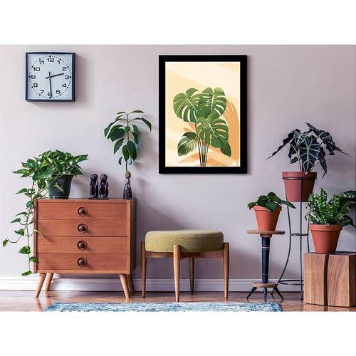 Quadro Decorativo Monstera Abstrato Sala Quarto + Vidro A4 - Cor: Preto